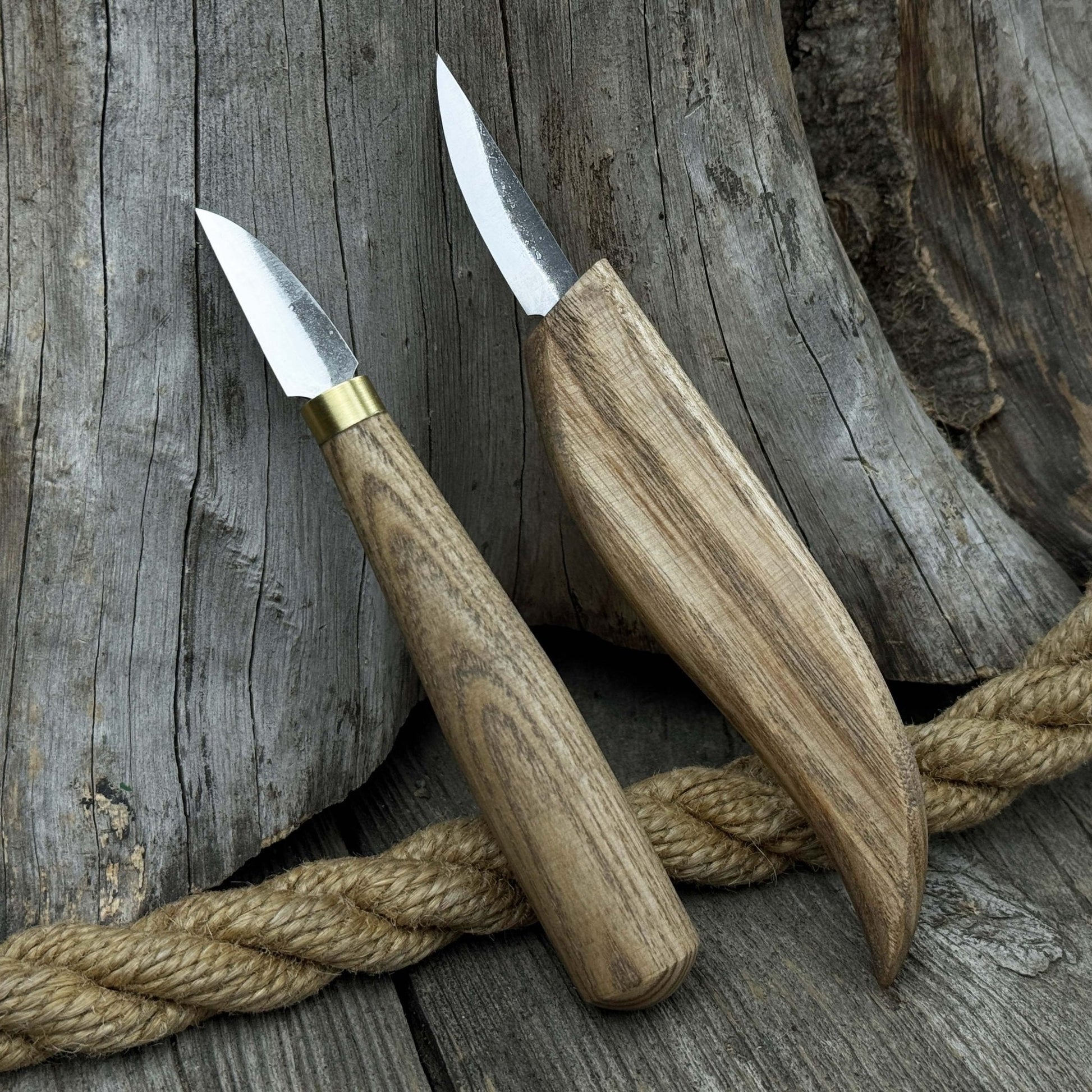 This hand-forged 2-Piece Carving Knife Set is crafted for woodworkers who value precision, control, and versatility in fine detail work. Ideal for shaping contours, chip carving, and refining intricate elements, the set includes one long-blade detail knife and one short-blade chip carving knife—allowing smooth transitions and confident handling across a range of techniques. Suitable for both beginners and experienced artisans, these tools deliver reliable performance for everyday carving projects.