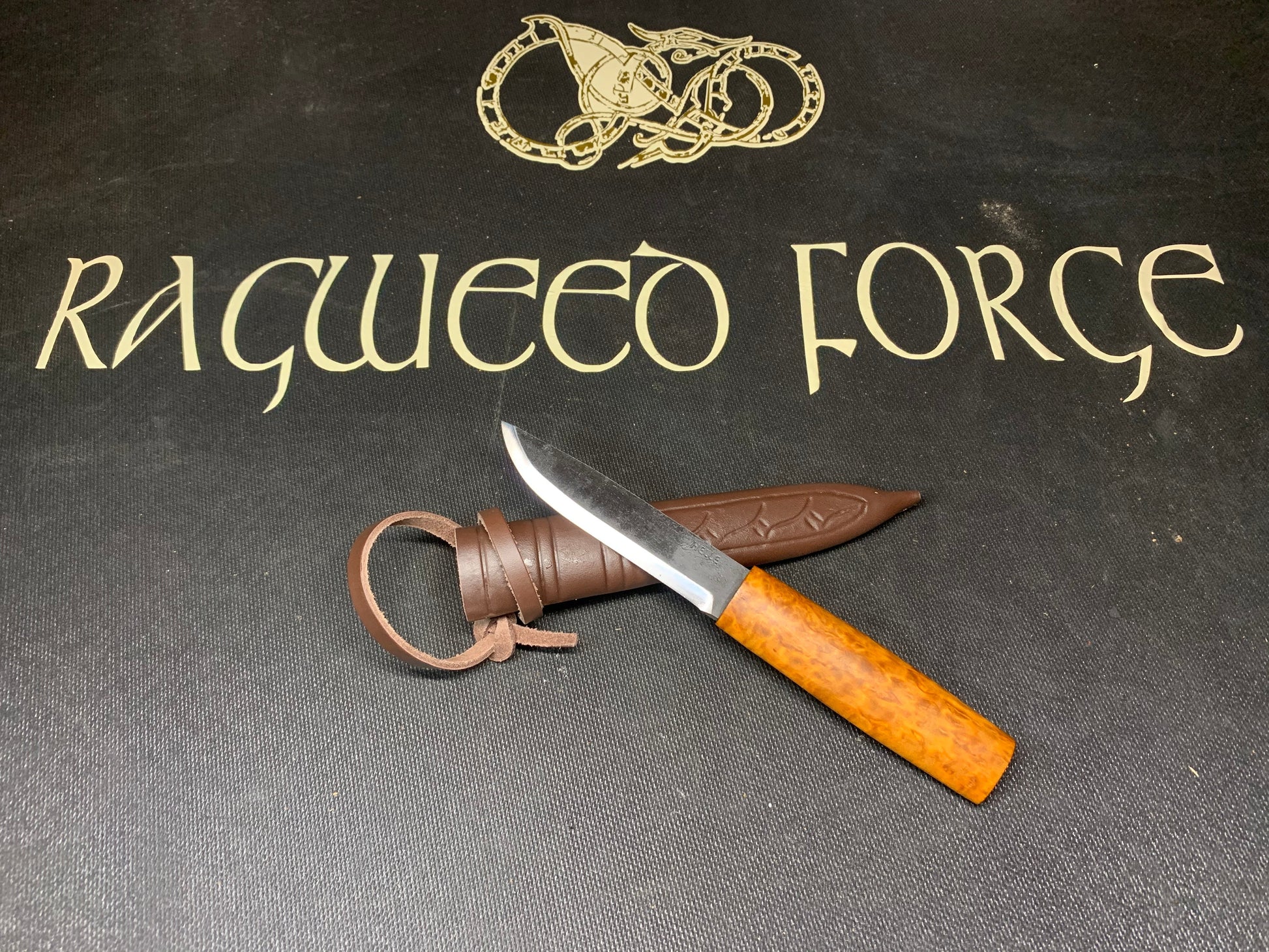 The Helle Viking is a revision of a Helle classic. The original Viking was designed by Arne Emile Christensen as a recreation of a Viking Age belt knife. Professor Christensen is with the University Museum of National Antiquities in Oslo. (There is an excellent introduction to the Vikings posted by the Norwegian government and written by Professor Christensen.) The knife was produced as part of a fund-raiser for an around-the-world cruse of a Viking longship.