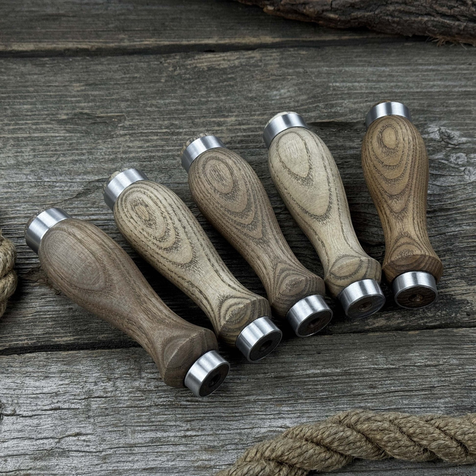 This set of five replacement ash wood handles is crafted for restoring or customizing a variety of carving tools, including chisels and gouges. Designed with a wide, ergonomic shape and reinforced with aluminum rings, these handles offer lasting durability, a comfortable grip, and enhanced control—perfect for both hobbyists and professional woodworkers.