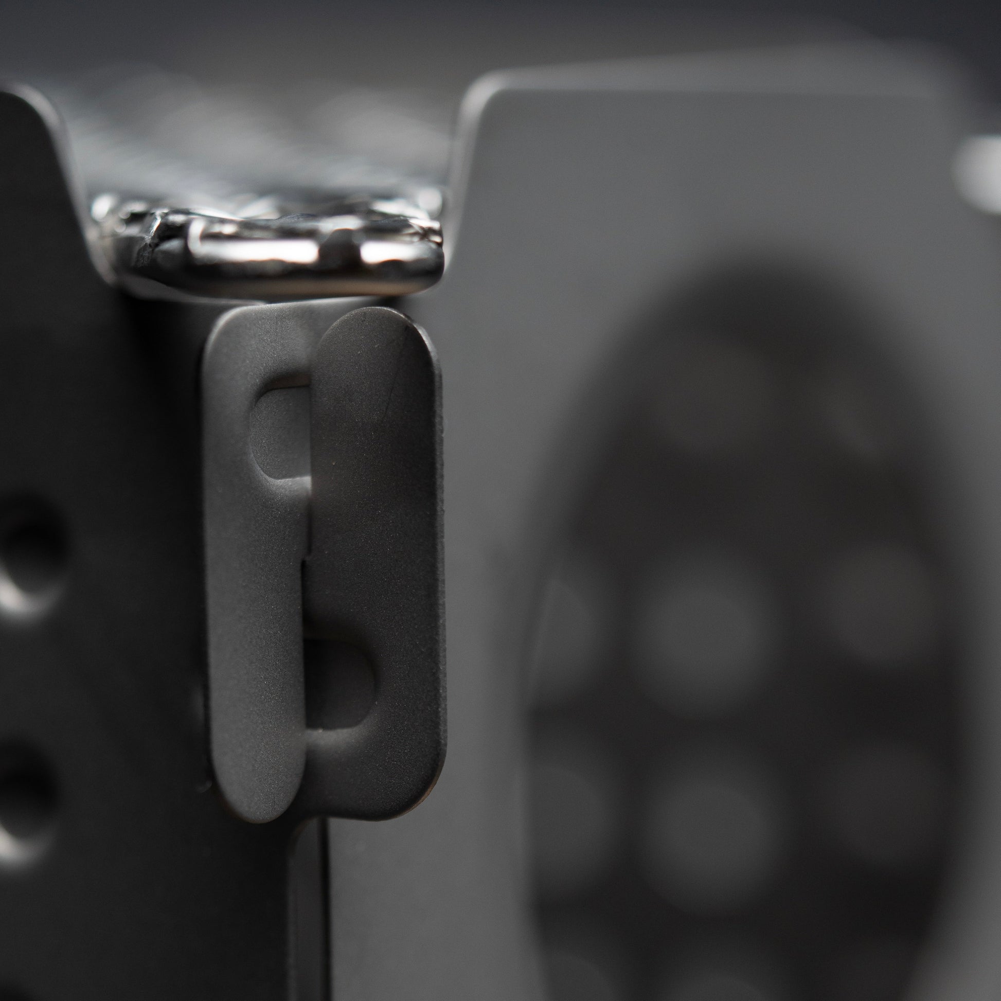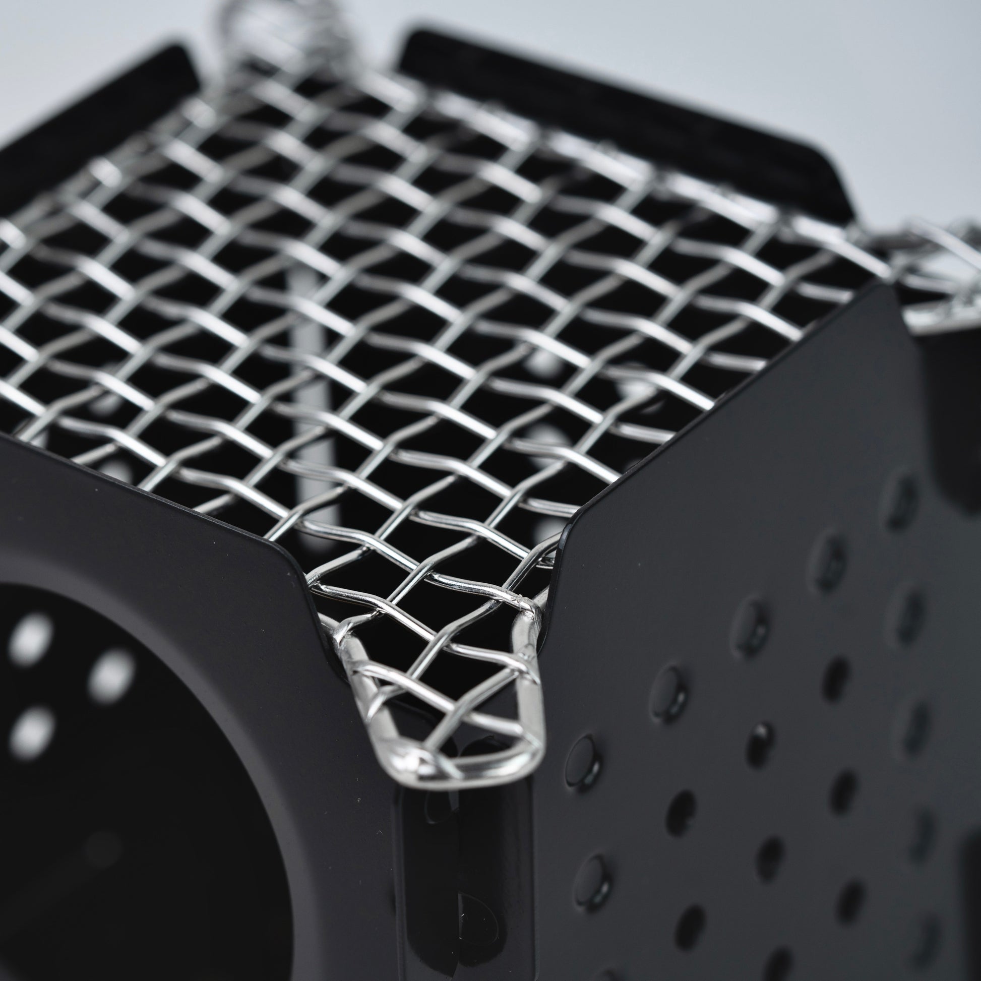 Intuitive interlocking panel design + grill grate allows for low-profile packability without compromising strength.