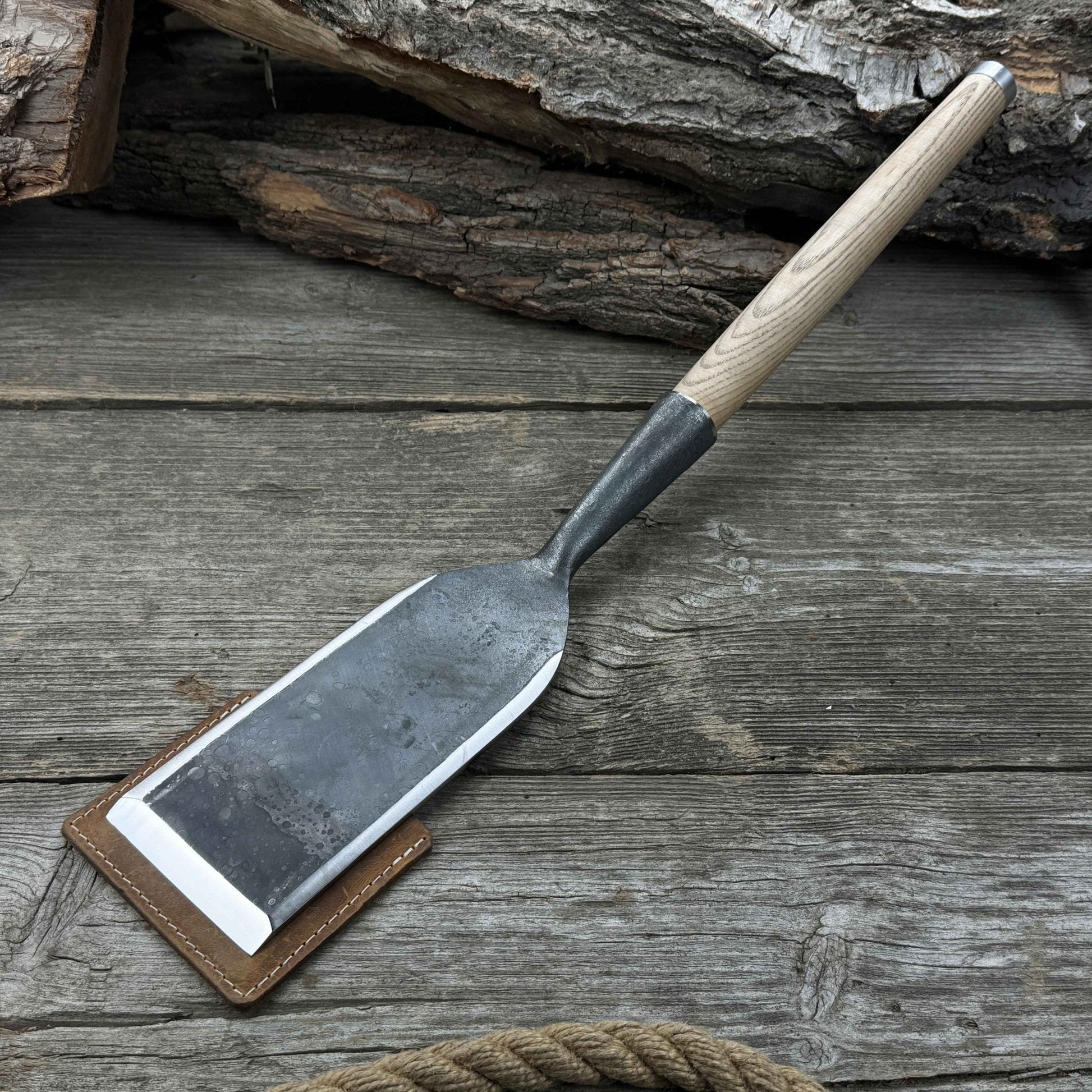 The Timber Slick Chisel is a versatile tool designed for heavy-duty wood carving, making it ideal for both professional craftsmen and woodworking enthusiasts. The chisel features a long steel blade, available in a variety of widths, making it perfect for different cutting and shaping tasks. Whether you're working on large carving projects or fine detailing, the Slick Chisel ensures smooth, controlled cuts with precision. Its ergonomic handle allows for a secure grip and comfort during extended use, while the leather sheath provides safe storage and easy portability.